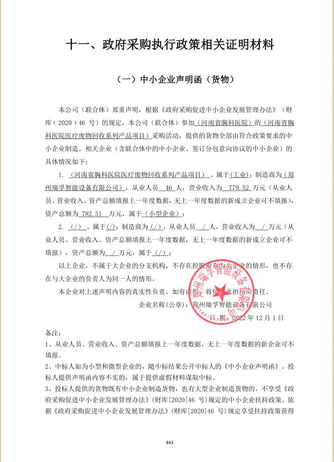 2、采購(gòu)項(xiàng)目名稱:河南省胸科醫(yī)院醫(yī)療廢物回收系列產(chǎn)品項(xiàng)目
