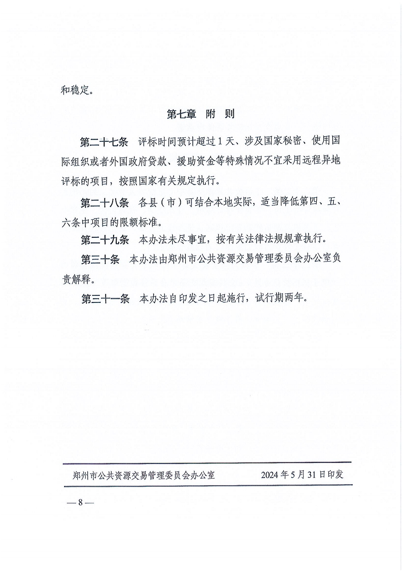 關于印發(fā)《鄭州市公共資源交易工程建設項目遠程異地評標辦法》的通知