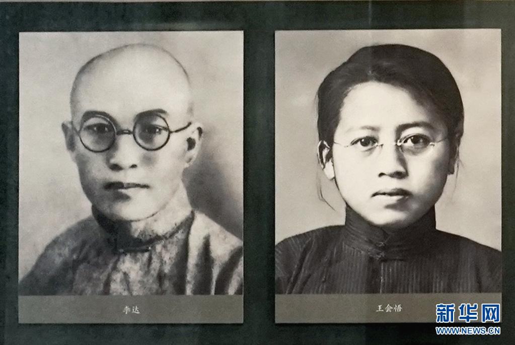 中共二大會址紀(jì)念館展示的李達、王會悟夫婦的照片。新華社發(fā)
