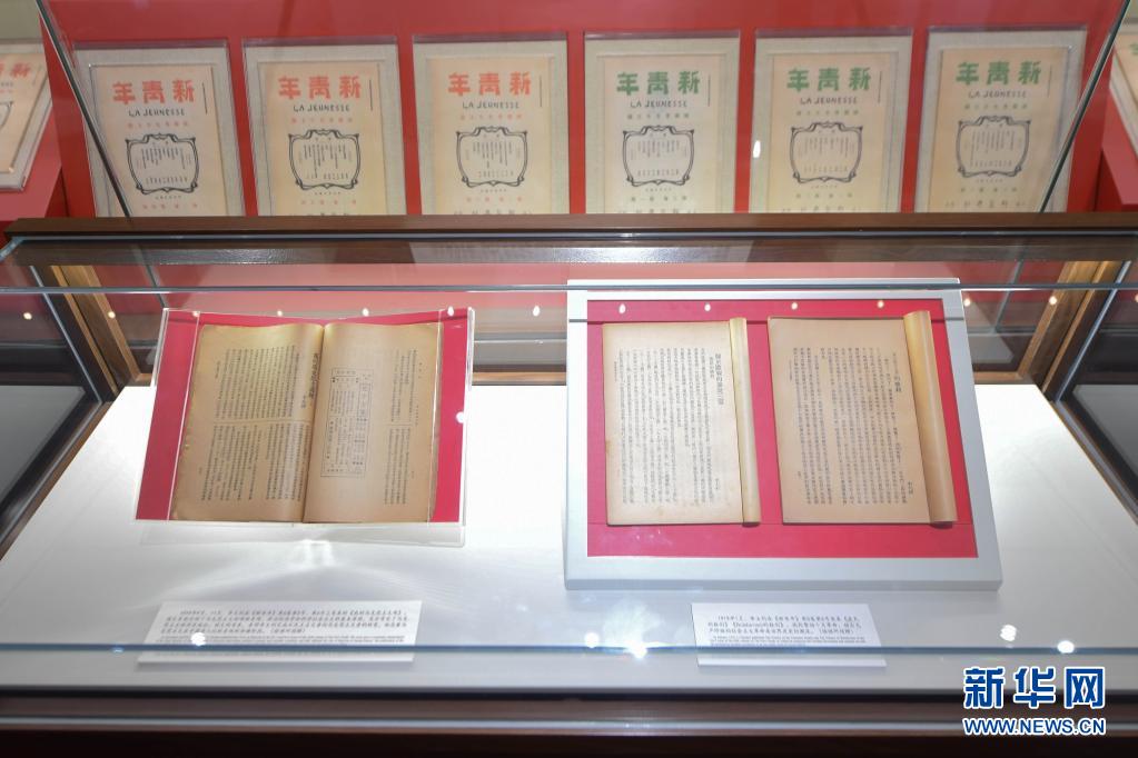 這是6月26日在北大紅樓拍攝的刊登李大釗《布爾什維主義的勝利》《我的馬克思主義觀》的《新青年》5卷5號(hào)(右)、6卷5號(hào)(左)原件。新華社記者 謝晗 攝