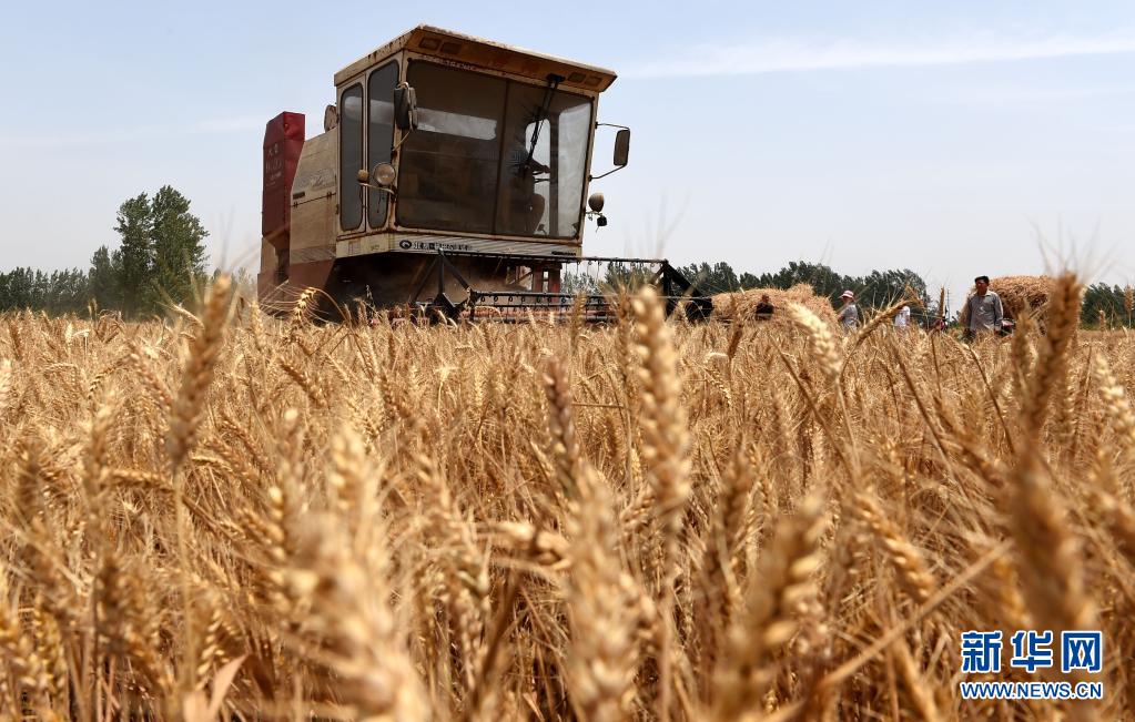 2015 年 6 月 6 日,一輛聯(lián)合收割機(jī)在河南省開封市尉氏縣張市鎮(zhèn)王崗村的麥田里作業(yè)。 新華社記者 李博 攝