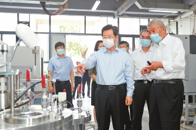 樓陽(yáng)生走進(jìn)河南省資源與材料工業(yè)技術(shù)研究院、納米光機(jī)電與生物醫(yī)學(xué)工程實(shí)驗(yàn)室,參觀研究成果展,了解技術(shù)產(chǎn)品創(chuàng)新、科研團(tuán)隊(duì)建設(shè)、研發(fā)平臺(tái)運(yùn)行、成果轉(zhuǎn)化等情況。得知研究院準(zhǔn)備以靶材料研究申請(qǐng)國(guó)家級(jí)創(chuàng)新平臺(tái),樓陽(yáng)生表示省委、省政府將全力支持,指出要把創(chuàng)新鏈、產(chǎn)業(yè)鏈融合起來(lái),推進(jìn)科研成果產(chǎn)業(yè)化。樓陽(yáng)生強(qiáng)調(diào),要把現(xiàn)有的科研資源進(jìn)一步整合重組,凝練一流課題,搭建一流平臺(tái),多出一流成果。