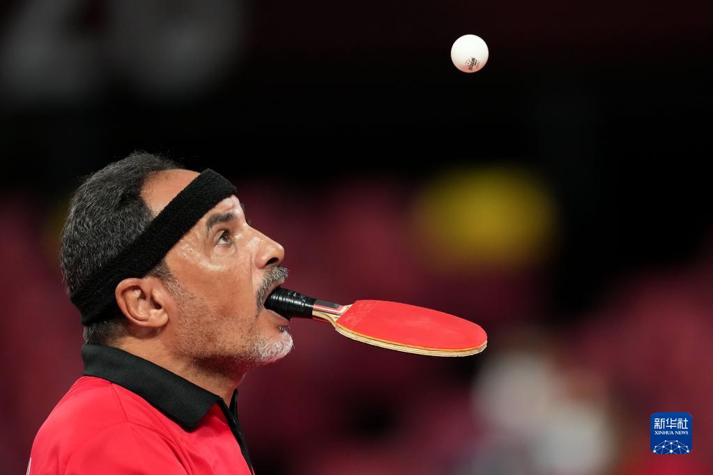 8月27日,埃及選手易卜拉欣·哈馬托在東京殘奧會乒乓球小組賽中發(fā)球。新華社記者 張鋮 攝
