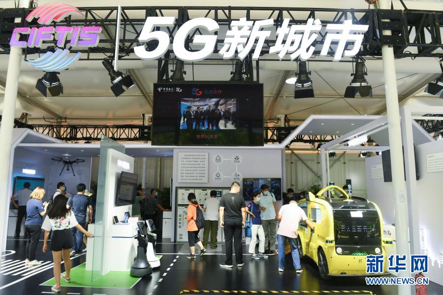 9 月 7 日,觀眾在 2020 年中國(guó)國(guó)際服務(wù)貿(mào)易交易會(huì) 5G 通信服務(wù)專(zhuān)題展區(qū)參觀。 2020 年中國(guó)國(guó)際服務(wù)貿(mào)易交易會(huì) 9 月 4 日至 9 日在北京舉行。新華社記者 魯鵬 攝