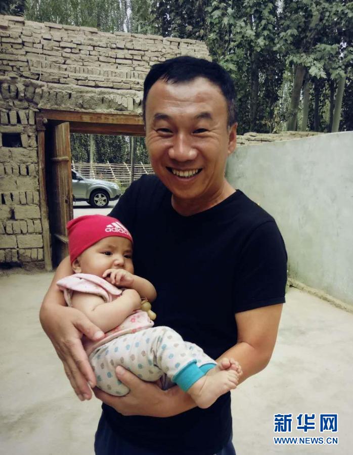 天津援疆干部席世明抱著維吾爾族小姑娘“小石榴”(資料照片)。新華社發(fā)