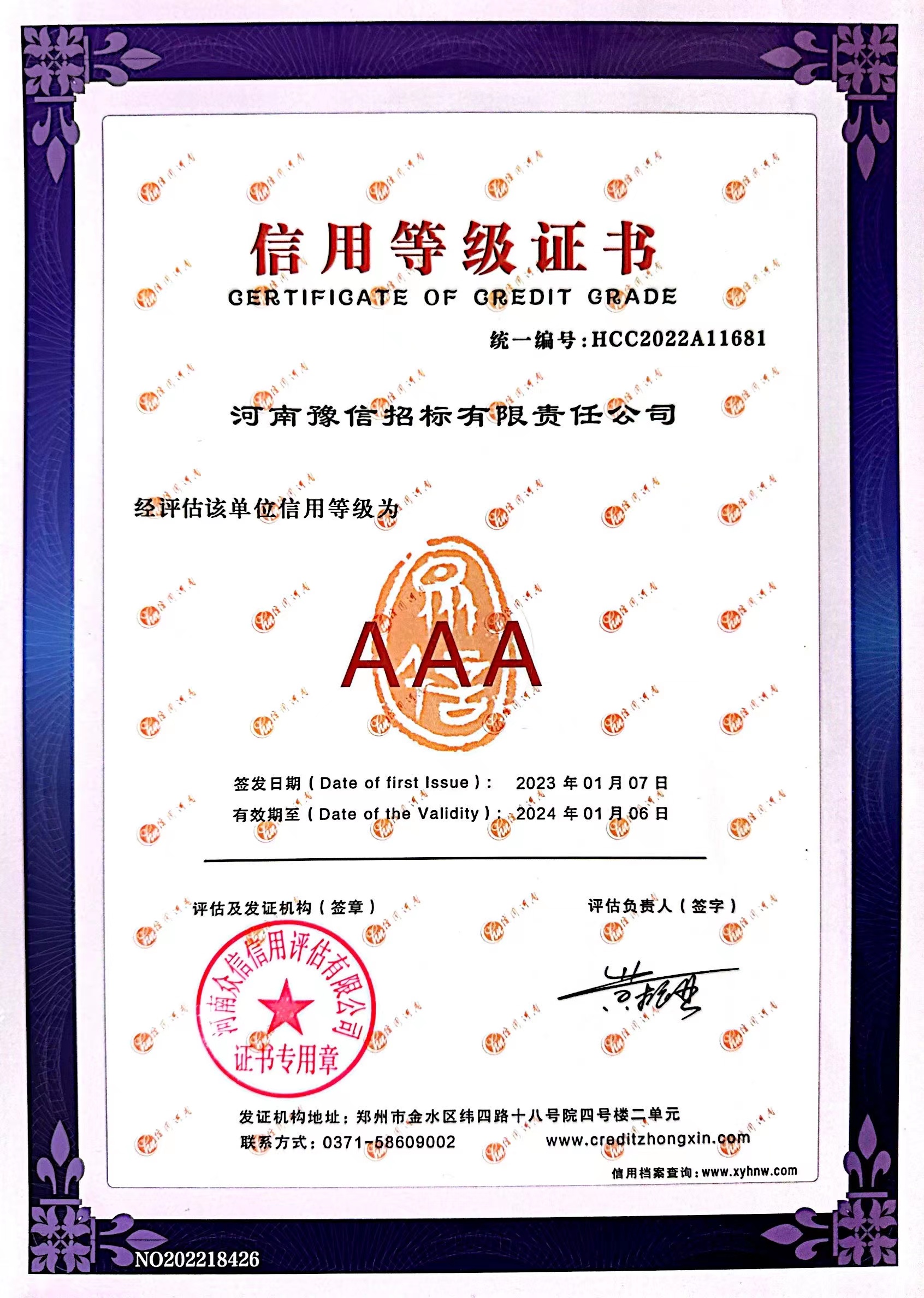 2022年度鄭州市招標(biāo)代理機(jī)構(gòu) AAA 級(jí)企業(yè) -