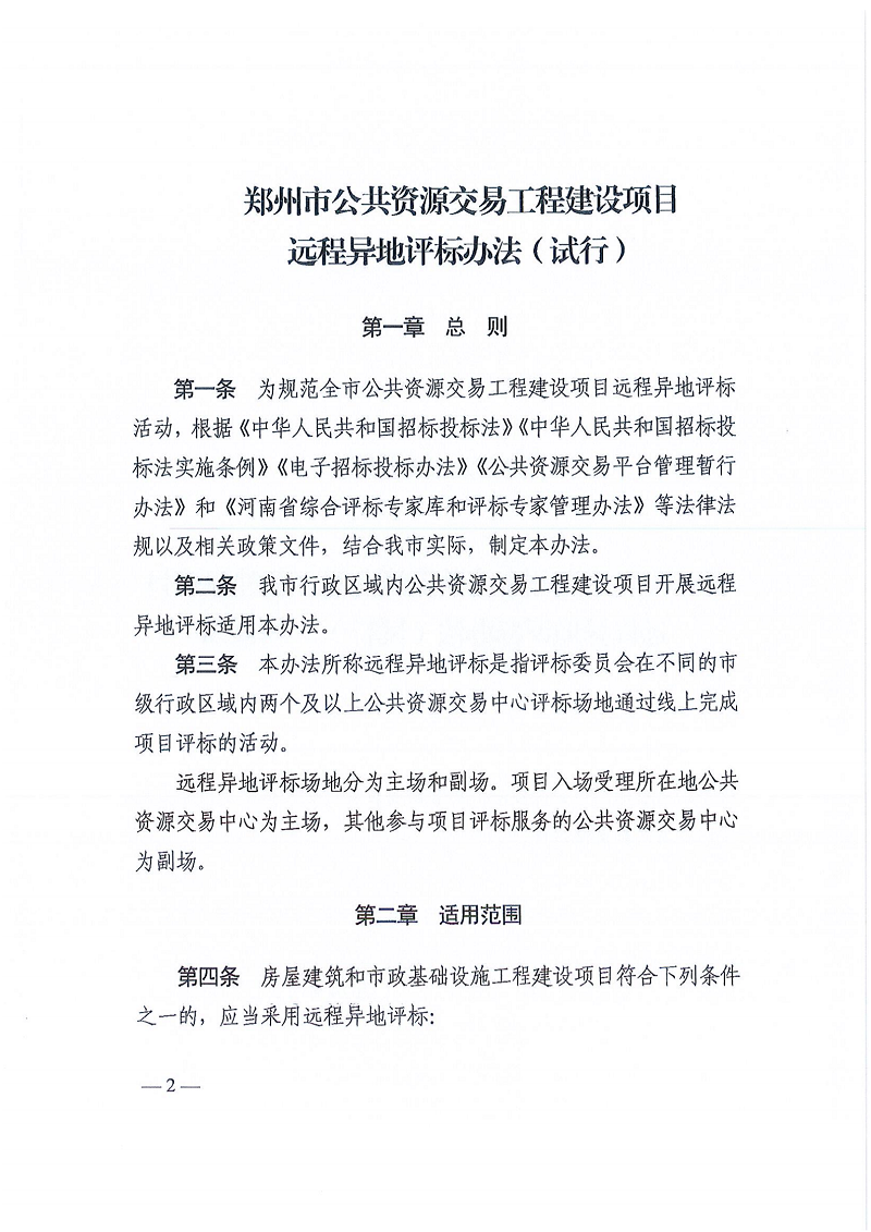 關于印發(fā)《鄭州市公共資源交易工程建設項目遠程異地評標辦法》的通知