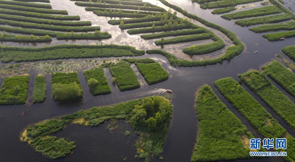 這是5月25日在雄安新區(qū)拍攝的白洋淀美景(無人機(jī)照片)。新華社記者 才揚(yáng) 攝