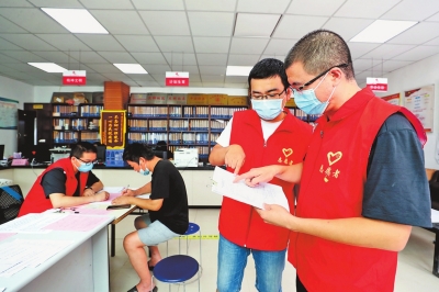 ?? 7月29日,鄭州市未來路街道金色港灣社區(qū),鄭州市大數(shù)據(jù)管理局工作人員與社區(qū)志愿者在統(tǒng)計居民受損情況。 本報記者 聶冬晗 攝