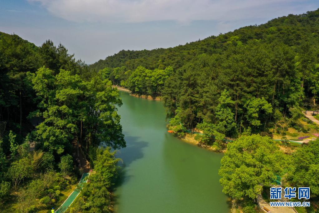 經(jīng)過生態(tài)修復后的重慶縉云山國家級自然保護區(qū)黛湖(無人機照片,2020年5月18日攝)。 新華社記者 劉潺 攝