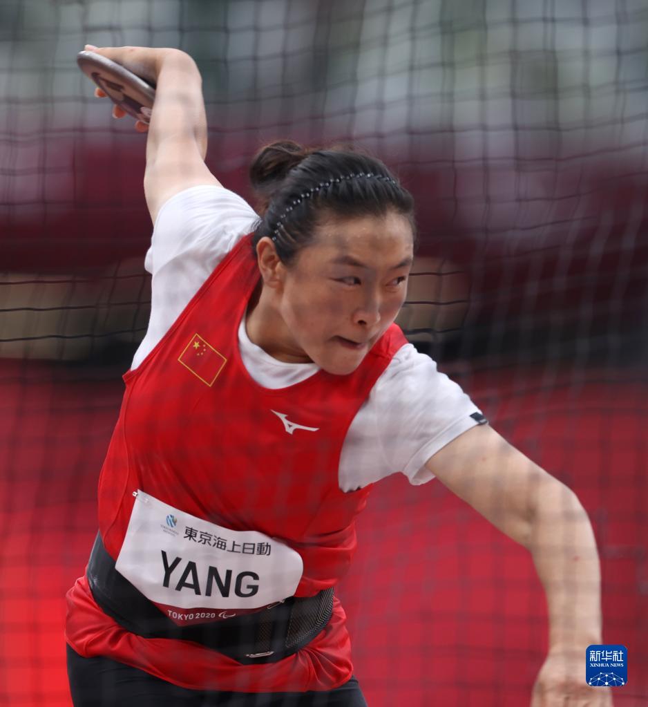 8月29日,中國選手楊月在東京殘奧會田徑女子鐵餅F64級決賽中。新華社記者 杜瀟逸 攝