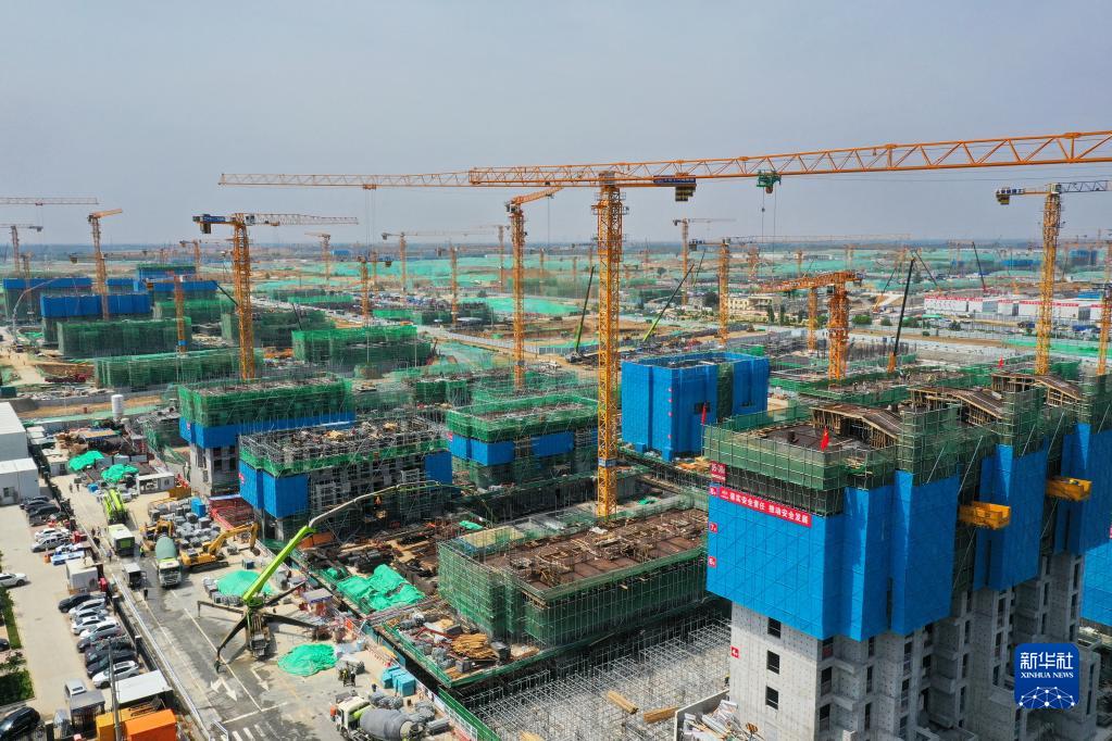 這是雄安新區(qū)容西片區(qū)建設(shè)現(xiàn)場(7月3日攝,無人機(jī)照片)。新華社記者 楊世堯 攝