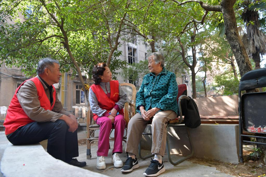 2019年11月,在江西省新余市渝水區(qū)新鋼街道含笑社區(qū),“敲門嫂”志愿服務(wù)隊(duì)在社區(qū)里陪一名老人聊家常(新華社記者彭昭之 攝)