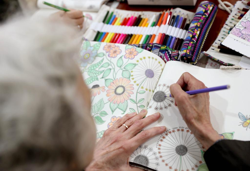 2020年11月,在上海市靜安區(qū)江寧路街道愛老家園,一位老年人在通過(guò)圖畫填色進(jìn)行康復(fù)訓(xùn)練(新華社記者劉穎 攝)