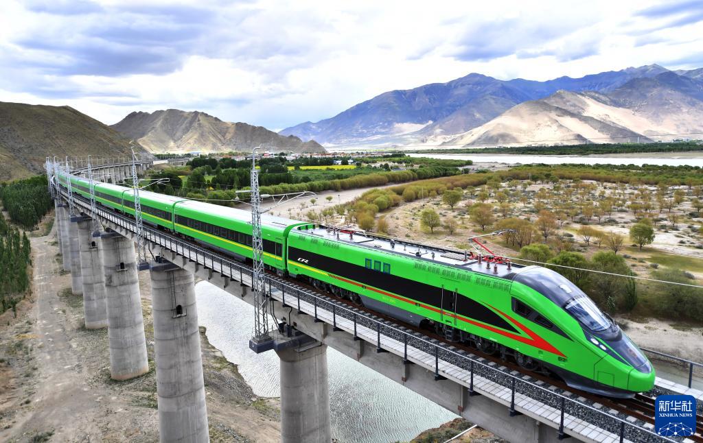數(shù)千里之外,青藏高原。雅魯藏布江河谷中,全新的復(fù)興號(hào)列車呼嘯而過。