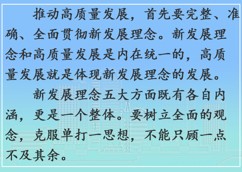 黨的十九屆六中全會審議通過的《中共中央關于黨的百年奮斗重大成就和歷史經(jīng)驗的決議》指出:“黨中央強調,貫徹新發(fā)展理念是關系我國發(fā)展全局的一場深刻變革,不能簡單以生產(chǎn)總值增長率論英雄,必須實現(xiàn)創(chuàng)新成為第一動力、協(xié)調成為內生特點、綠色成為普遍形態(tài)、開放成為必由之路、共享成為根本目的的高質量發(fā)展,推動經(jīng)濟發(fā)展質量變革、效率變革、動力變革?!?/span>