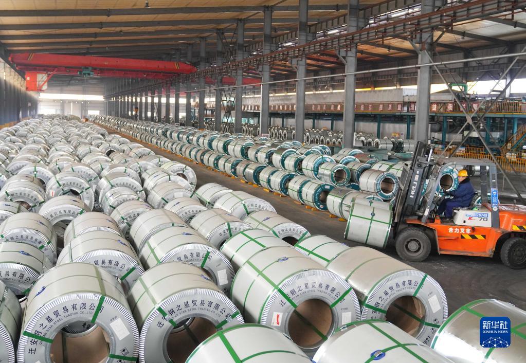 河北省鋼鐵重鎮(zhèn)遷安市一家彩涂鋼板企業(yè)的工人在生產(chǎn)車(chē)間工作(12月11日攝)。新華社記者 楊世堯 攝