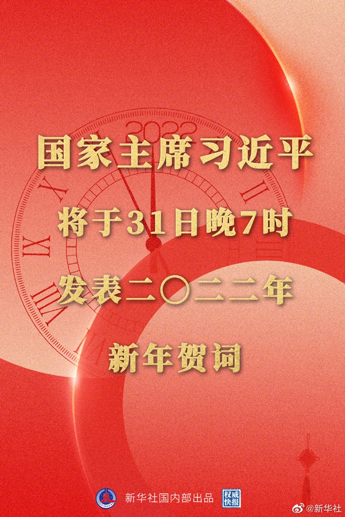 國家主席習近平將發(fā)表二〇二二年新年賀詞