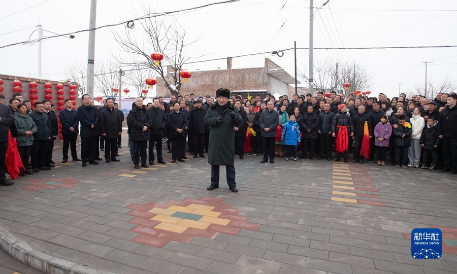 村文化廣場上十分熱鬧,村民們打起威風(fēng)鑼鼓、扭起秧歌歡慶佳節(jié)??吹娇倳泚砹?,人們高興地歡呼起來。習(xí)近平對(duì)鄉(xiāng)親們說,我們黨的根本宗旨就是為人民群眾辦好事,為人民群眾幸福生活拼搏、奉獻(xiàn)、服務(wù)。我們?nèi)缙诖蜈A了脫貧攻堅(jiān)戰(zhàn),如期實(shí)現(xiàn)了全面建成小康社會(huì)目標(biāo),現(xiàn)在踏上了全面建設(shè)社會(huì)主義現(xiàn)代化國家新征程。建設(shè)現(xiàn)代化國家離不開農(nóng)業(yè)農(nóng)村現(xiàn)代化,要繼續(xù)鞏固脫貧攻堅(jiān)成果,扎實(shí)推進(jìn)鄉(xiāng)村振興,讓群眾生活更上一層樓,在推進(jìn)農(nóng)業(yè)農(nóng)村現(xiàn)代化中越走越有奔頭。