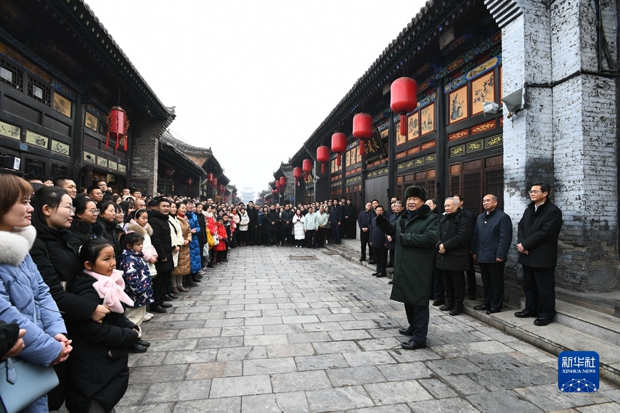 1月26日至27日,中共中央總書記、國家主席、中央軍委主席習(xí)近平來到山西,看望慰問基層干部群眾。這是27日上午,習(xí)近平在平遙古城同現(xiàn)場群眾親切交流。新華社記者 謝環(huán)馳 攝