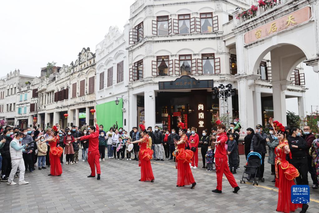 2月5日,市民在??谑序T樓老街觀看表演。新華社記者 張麗蕓 攝