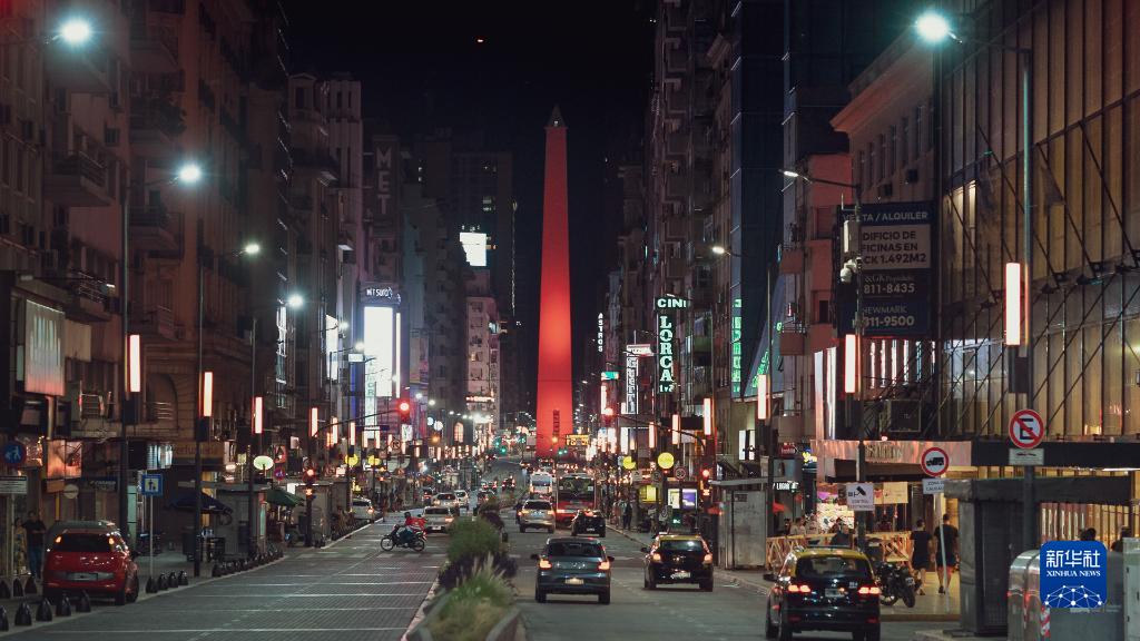 這是1月31日在阿根廷首都布宜諾斯艾利斯拍攝的亮起“中國(guó)紅”的方尖碑。新華社發(fā)(第四屆“中國(guó)春節(jié)文化之旅”主辦方供圖)