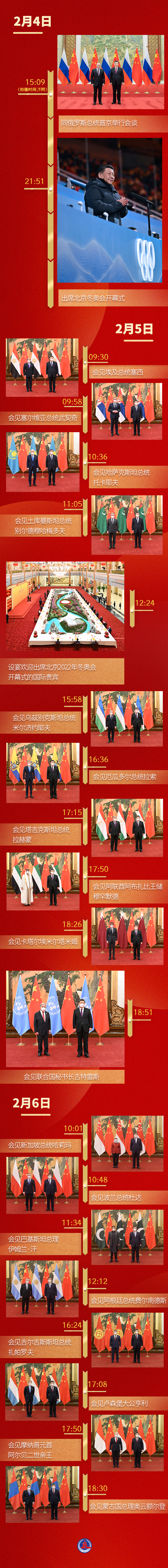 當人們共賞精彩激烈的北京冬奧會時,習(xí)近平主席開啟了高強度、快節(jié)奏的外事日程。這也成為新冠肺炎疫情發(fā)生后,兩年多來在華舉行的最大規(guī)模的主場活動,向世界傳遞著中國同各國團結(jié)合作、“一起向未來”的強烈信號。