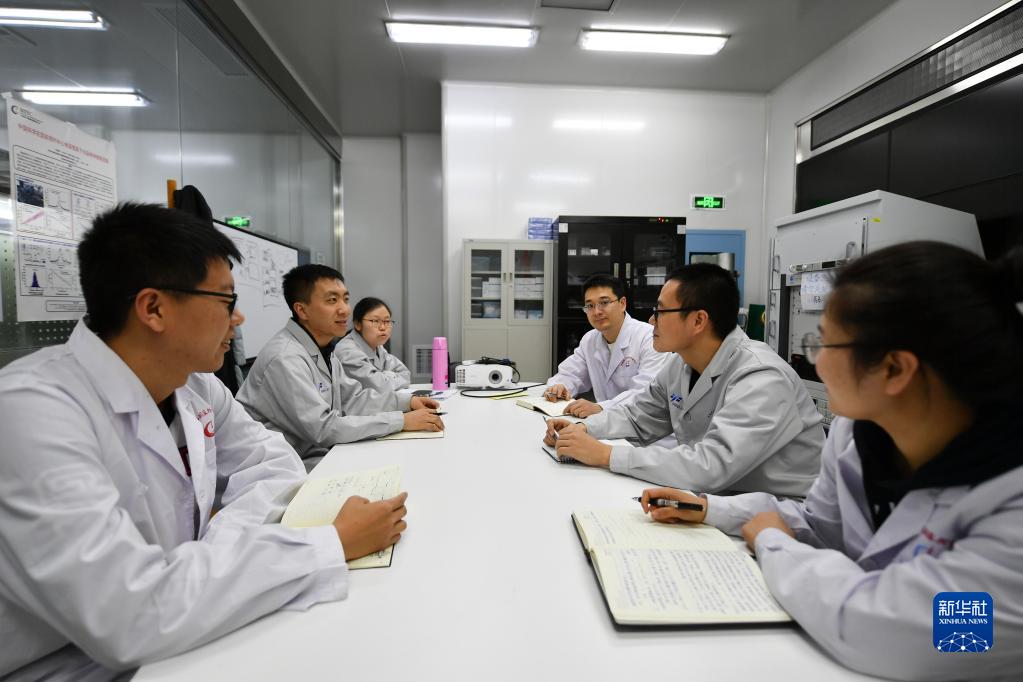 2月7日,科研人員在中國(guó)科學(xué)院國(guó)家授時(shí)中心空間鍶原子光鐘實(shí)驗(yàn)室討論項(xiàng)目進(jìn)度。新華社記者 張博文 攝