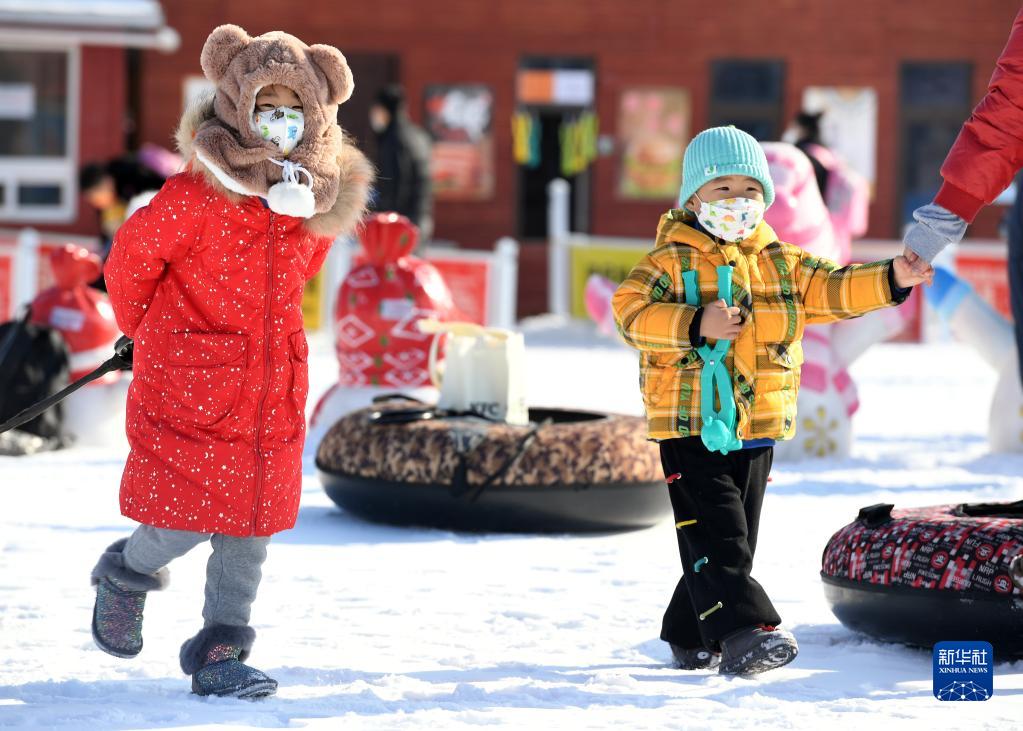 小朋友在北京國際鮮花港冰雪嘉年華游玩(1月8日攝)。新華社記者 任超 攝
