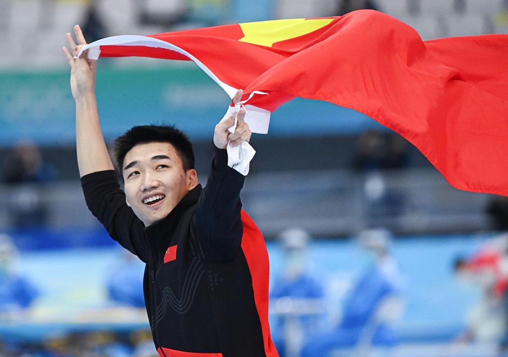 2月12日,高亭宇在比賽后慶祝。新華社記者熊琦攝