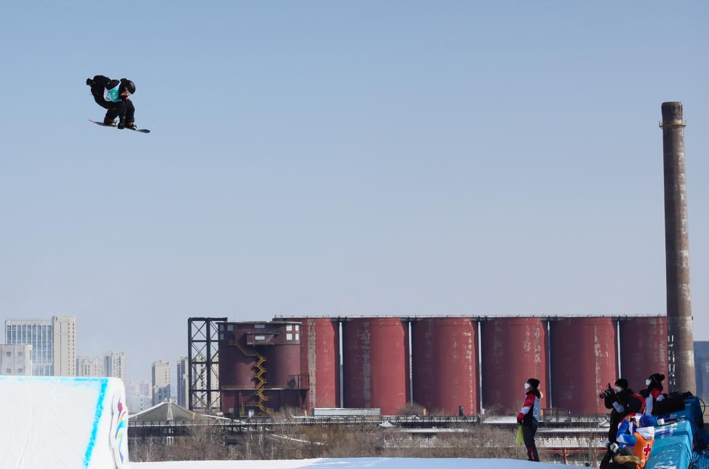 2月15日,蘇翊鳴在單板滑雪男子大跳臺(tái)比賽中。新華社記者蘭紅光攝