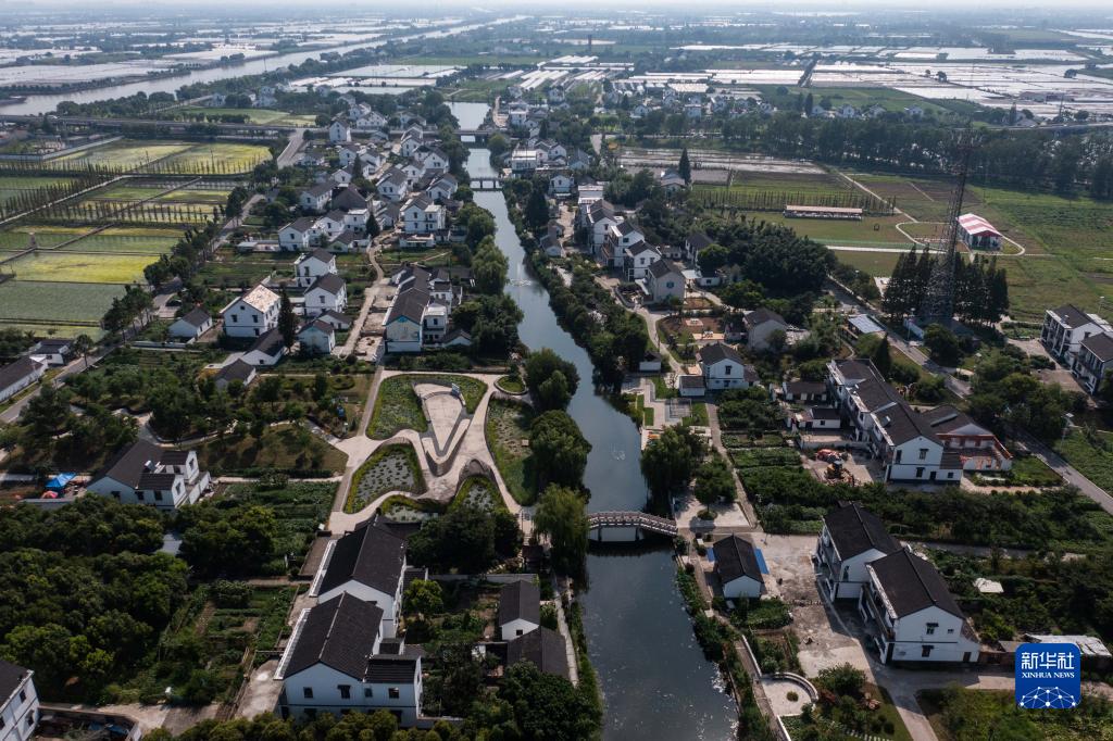 空中俯瞰浙江省嘉興市嘉善縣姚莊鎮(zhèn)橫港村(2021年7月12日攝,無人機(jī)照片)。近年來,嘉善縣建設(shè)高標(biāo)準(zhǔn)農(nóng)田14.8萬畝;同時(shí)建設(shè)產(chǎn)業(yè)幫扶聯(lián)合體、農(nóng)業(yè)社會(huì)化服務(wù)綜合體等,不斷拓寬農(nóng)民增收致富渠道,走出了一條城鄉(xiāng)深度融合推動(dòng)共同富裕的實(shí)踐路子。新華社記者 徐昱 攝