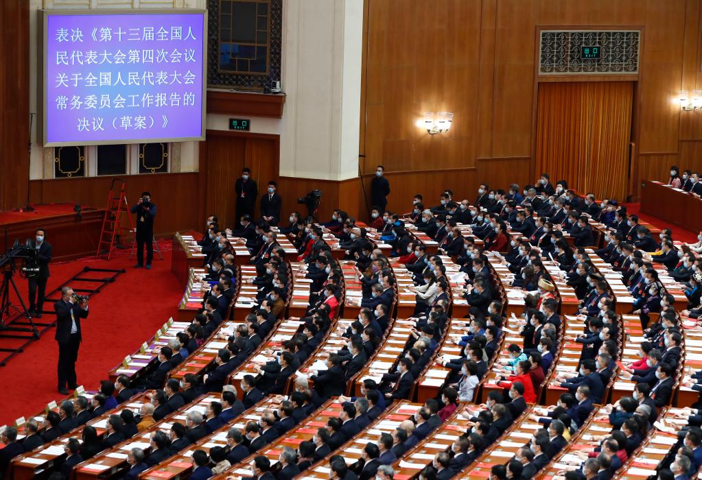 2021年3月11日,第十三屆全國人民代表大會第四次會議在北京人民大會堂舉行閉幕會。(新華社記者張玉薇攝)
