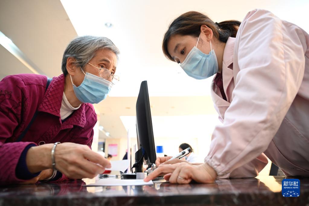 福建省三明市第一醫(yī)院的醫(yī)保辦工作人員(右)向前來咨詢藥品報銷問題的居民講解相關政策(2020年11月18日攝)。新華社記者 姜克紅 攝
