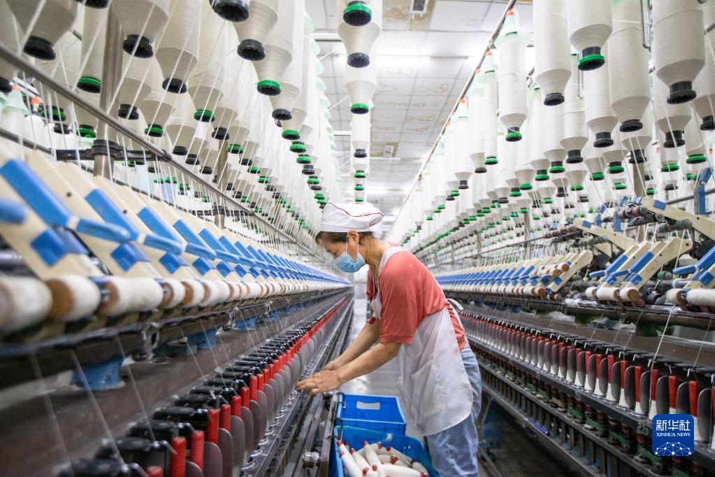 2月28日,工人在江蘇省海安市南莫鎮(zhèn)一家紡織公司生產(chǎn)車間內(nèi)忙碌。新華社發(fā)(翟慧勇 攝)