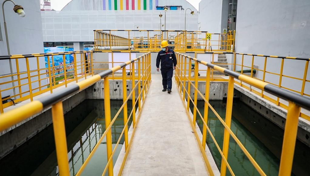 3月19日,工人在德龍鋼鐵公司水處理中心巡查。這里的生產廢水和生活污水經(jīng)處理后可循環(huán)使用,實現(xiàn)污廢水“零排放”。(陳雷攝)