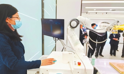 4月14日,濮陽大數(shù)據(jù)與人工智能研究院內(nèi),科研人員正在操作人工智能醫(yī)療儀器設(shè)備。
