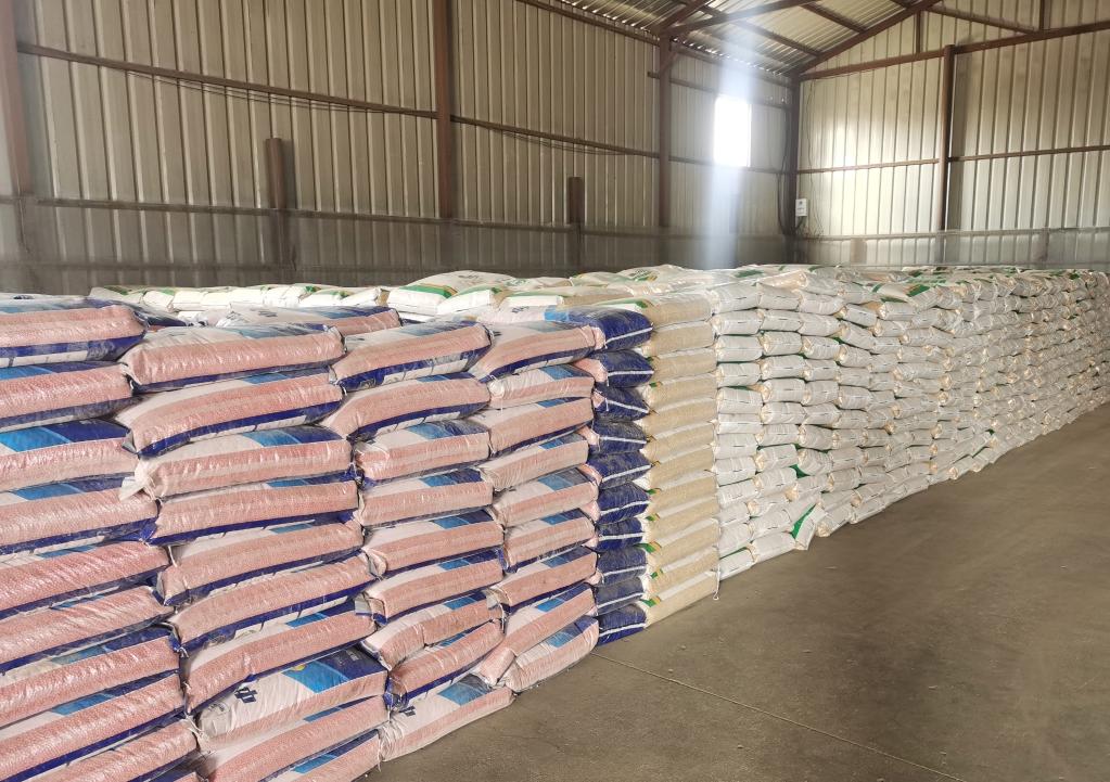 黑龍江省黑河市愛(ài)輝區(qū)嘉興現(xiàn)代農(nóng)機(jī)專業(yè)合作社購(gòu)買(mǎi)的農(nóng)資(4月12日攝)。新華社發(fā)