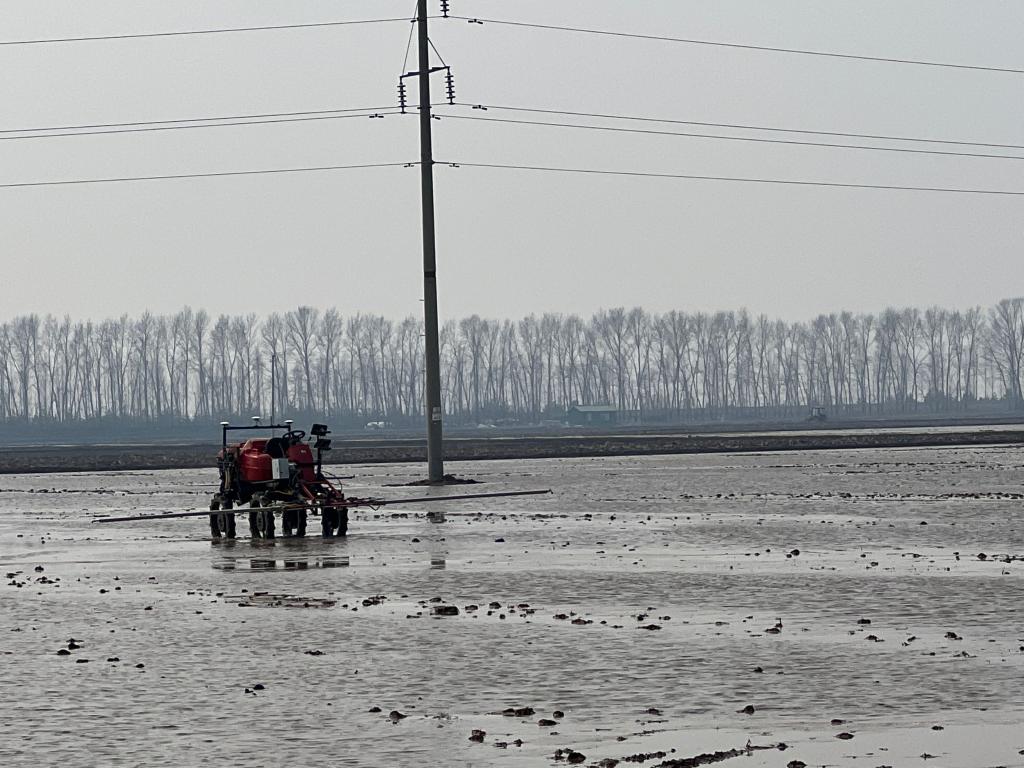 北大荒集團建三江分公司創(chuàng)業(yè)農場有限公司的一塊水田里,無人駕駛智能攪漿整地機正在作業(yè)。(受訪者供圖)