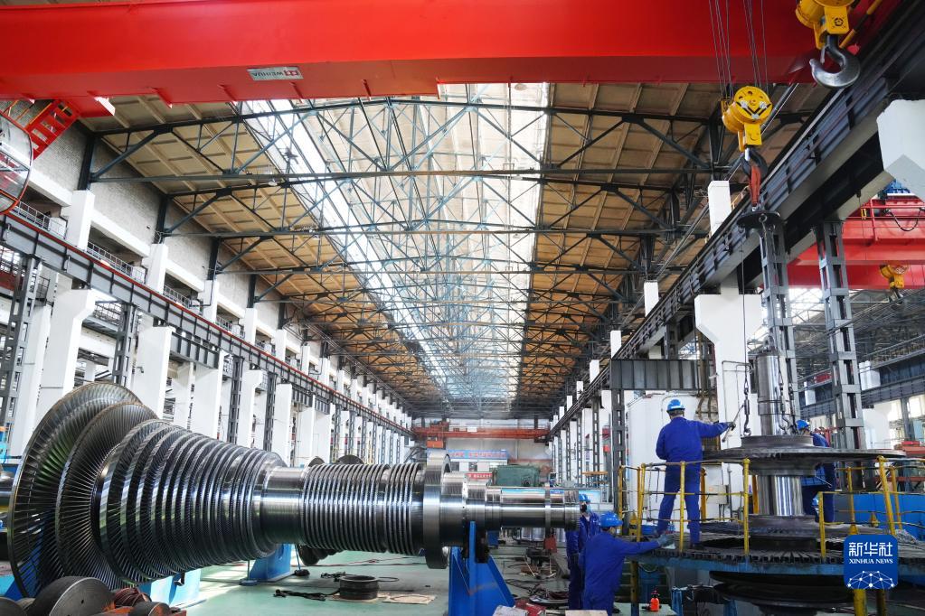 在哈電集團哈爾濱汽輪機廠有限責任公司生產車間,工人在生產作業(yè)(5月7日攝)。新華社記者 王建威 攝