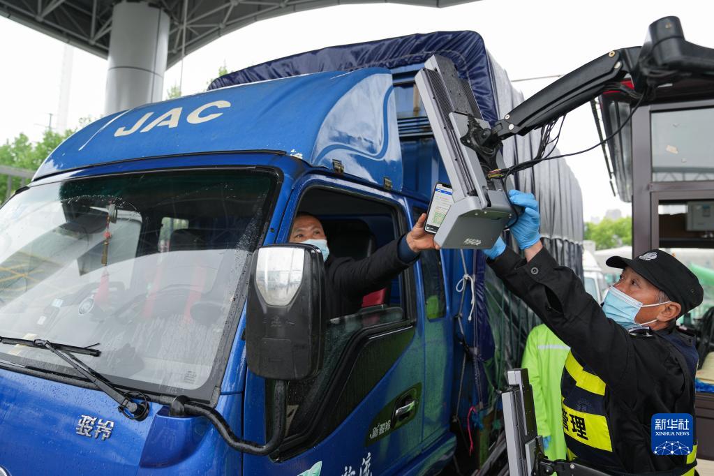 在安徽合肥百大周谷堆大興農產品物流園,司機在智能化門禁系統(tǒng)上掃碼進入(4月13日攝)。該園建立集測溫、核驗安康碼、數(shù)據(jù)收集等功能的智能化門禁系統(tǒng),進場駕乘人員不用下車即可快速核驗,實現(xiàn)防疫測溫智能化、人車追溯數(shù)據(jù)化。新華社記者杜宇攝
