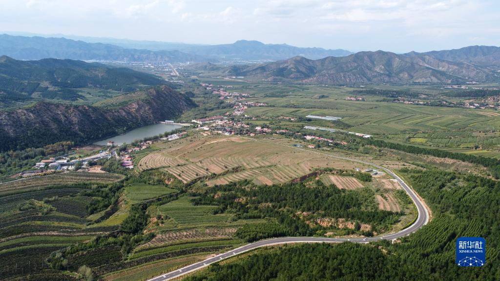 這是2021年8月30日拍攝的內(nèi)蒙古赤峰市喀喇沁旗馬鞍山村風光(無人機照片)。新華社記者 貝赫 攝