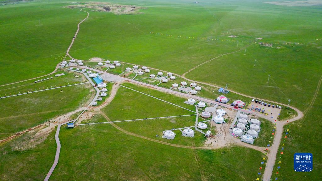 這是內(nèi)蒙古錫林郭勒盟寶力根蘇木的一處那達慕會場(2017年7月21日攝,無人機照片)。新華社記者 連振 攝