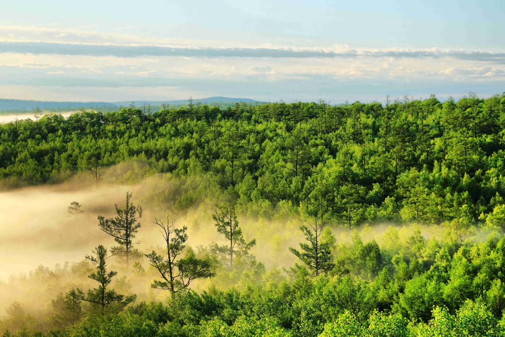 薄霧繚繞下的內(nèi)蒙古大興安嶺林區(qū)。(受訪單位供圖)