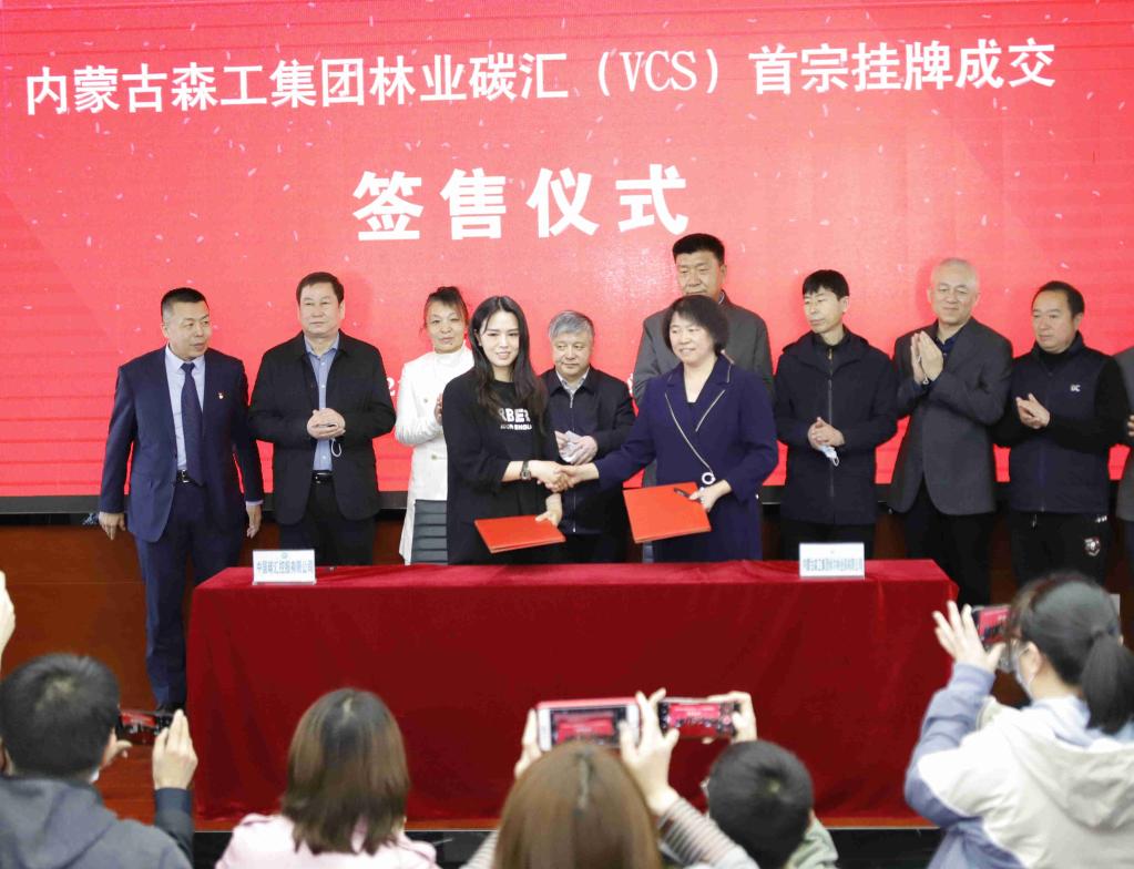 2021年4月8日,內(nèi)蒙古森工集團(tuán)林業(yè)碳匯(VCS)首宗掛牌成交簽售儀式在內(nèi)蒙古產(chǎn)權(quán)交易中心完成。(受訪單位供圖)