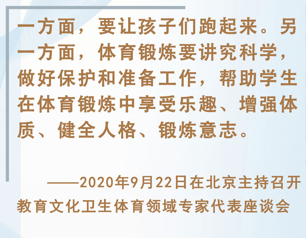 青少年是祖國的未來、民族的希望。強健的體魄是青少年成長成才的重要前提。對加強體育教育,增強青少年體質(zhì),習近平總書記念茲在茲。