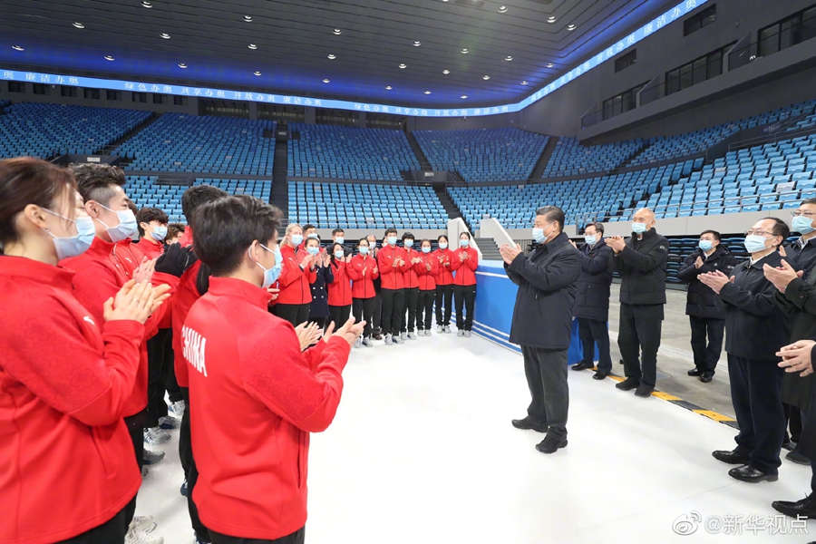 18日下午,習(xí)近平總書記來(lái)到位于北京市延慶區(qū)的國(guó)家高山滑雪中心考察調(diào)研。在競(jìng)技結(jié)束區(qū),習(xí)近平觀看了高山滑雪賽場(chǎng)保障運(yùn)行和競(jìng)技比賽訓(xùn)練情況。習(xí)近平指出,體育強(qiáng)國(guó)的基礎(chǔ)在群眾體育。要通過(guò)舉辦北京冬奧會(huì)、冬殘奧會(huì),把我國(guó)冰雪運(yùn)動(dòng)特別是雪上運(yùn)動(dòng)搞上去,在3億人中更好推廣冰雪運(yùn)動(dòng),推動(dòng)建設(shè)體育強(qiáng)國(guó)。臨別時(shí),大家齊聲高呼:“中國(guó)冰雪,加油!”習(xí)近平也鼓勵(lì)大家說(shuō):“加油!”(文字記者:張曉松、朱基釵 攝影記者:鞠鵬、王曄、燕雁、岳月偉)