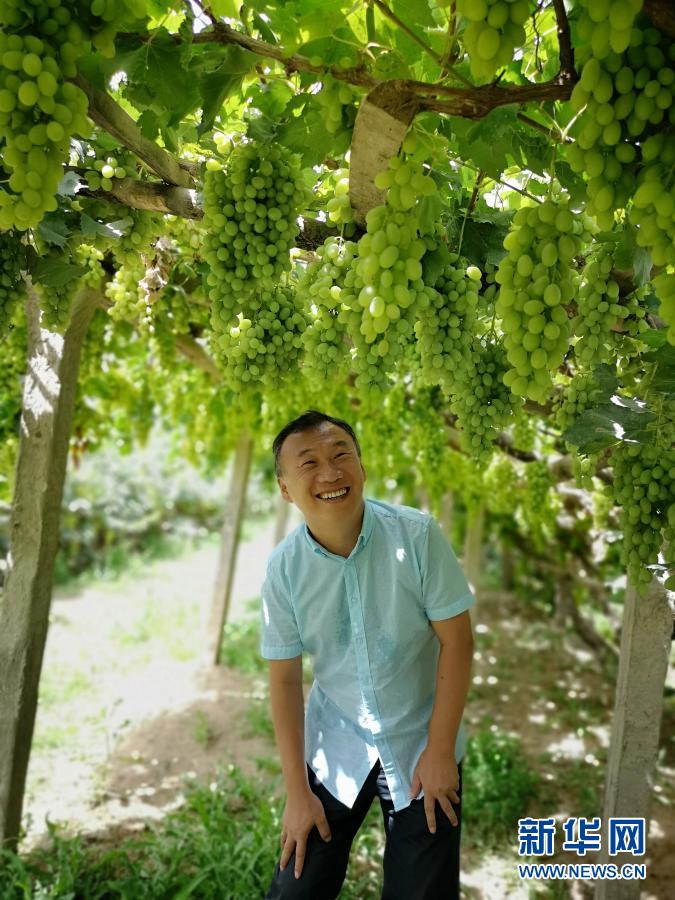 天津援疆干部席世明在于田縣一家葡萄種植合作社(資料照片)。新華社發(fā)