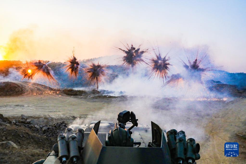陸軍第72集團(tuán)軍某旅組織某型輪式裝甲輸送車進(jìn)行車載煙幕實(shí)彈射擊訓(xùn)練(2021年1月4日攝)。新華社發(fā)(張毛 攝)