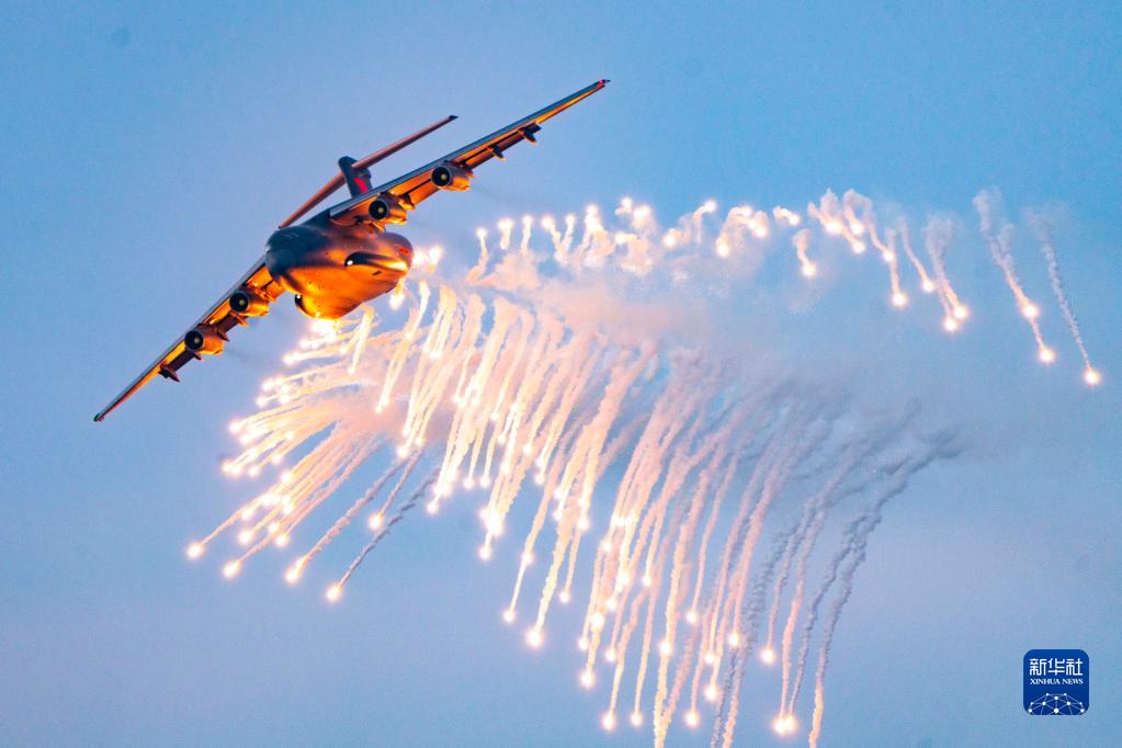 中部戰(zhàn)區(qū)空軍航空兵某團(tuán)運(yùn)-20飛機(jī)進(jìn)行釋放干擾彈訓(xùn)練(2020年12月10日攝)。新華社發(fā)(張猛 攝)